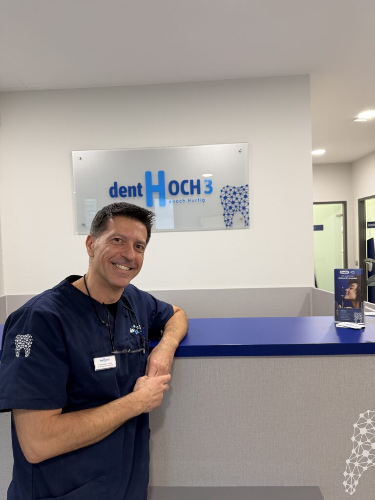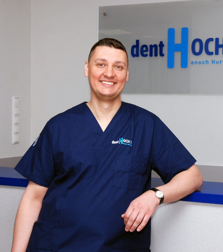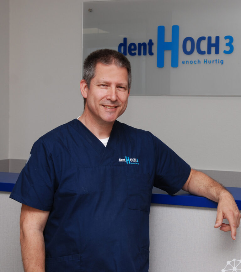 Herr Henoch Hurtig ist Zahnarzt in seiner eigenen Praxis, dentHOCH3, in Nürnberg. Herr Hurtig und sein Team bieten Patientinnen und Patienten das gesamte zahnärztliche Leistungsspektrum. Der Fokus liegt dabei auf Drei-Phasen-Konzept, bestehend aus Vorsorge, Erhalt und Wiederherstellung, womit bei Zahnproblematiken und auch Zahnsanierungen stets optimale Lösungen entwickelt werden.